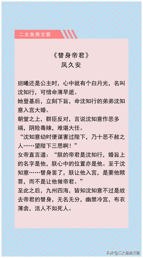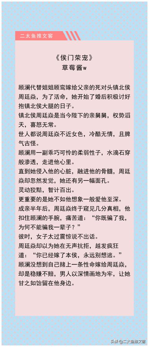 《花颜策》真不错!不过鱼看的时候也对这本书有所误会,因为这本书女主前期太作了,真是受不住这样的女主,所以我弃了,但后来还是打开看了一点,不好意思我还是弃书了,嗯~后来真的是好友强烈推荐又恰逢书荒,我又去看了,不过是直接跳到结尾看的,看完也没有觉得真香,但是吧,还是得承认是本好书,尽管前期非常劝退。(有不同看法的小伙伴不要喷我)