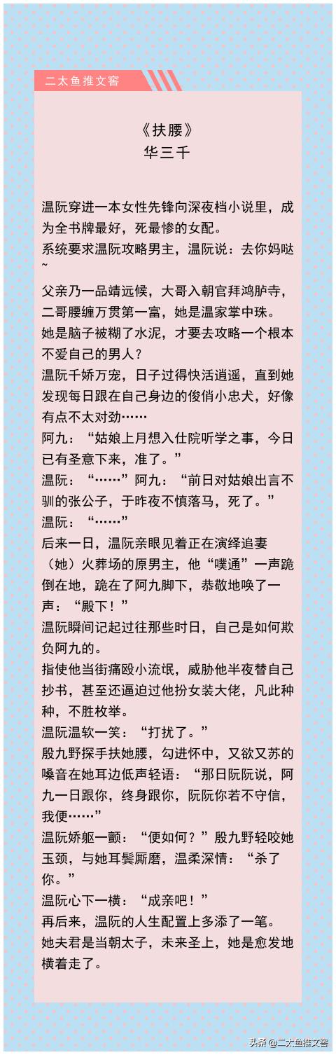 《扶腰》搞笑一点,文风轻松,文中人物互动挺搞笑的,我强推!
