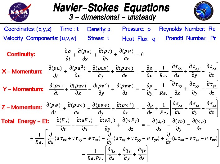 简单说,微分方程的意义就是描述物体局部物理量还有这些物理量的变化规律的,通过求解微分方程我们可以架起物体局部和整体之间的桥梁。比如说,下面一张图就是复杂的N-S方程,用来分析复杂流体的性质。