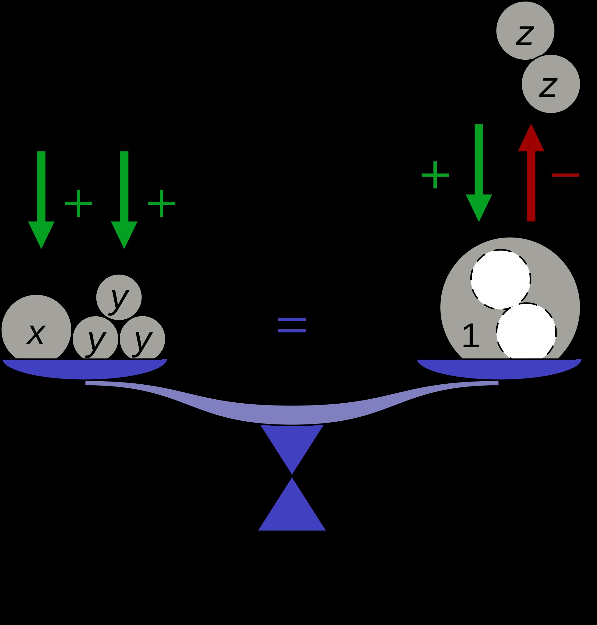 方程是什么?方程实际上就是一种含有未知数的等式。通过建立未知数和已知数之间的关系我们可以对方程进行求解。用天平来比喻,就是在等式的两边放上各种各样的砝码,有些砝码的重量我们知道,有些我们不知道,而通过天平的平衡我们可以知道这些位置砝码的重量。