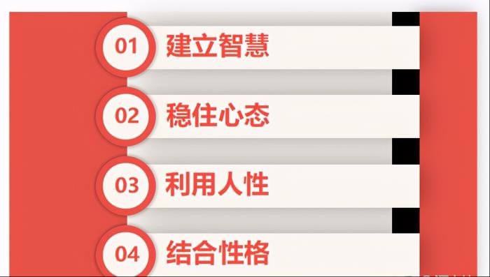建立智慧:你要明确目标,要的是真的复合,而不是形式上的假性复合!稳住心态:你的情绪心态特别重要,一定稳住心态抓住人性弱点:挽回要利用人性,人性的弱点是什么?抓住人性弱点:实战技巧,挽回如何利用人性的弱点?抓住性格特点:挽回要利用性格特点,如何利用?