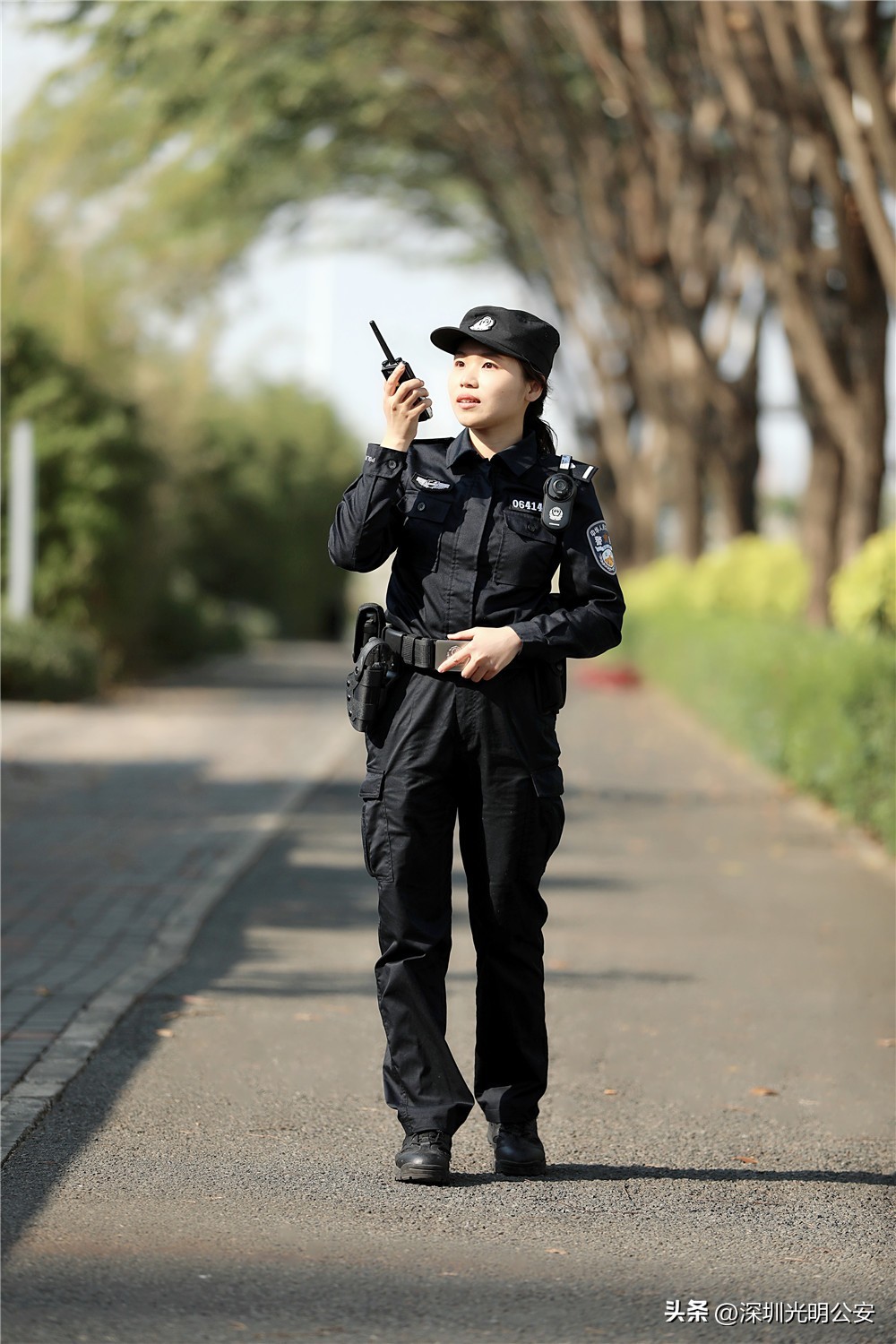 一米六的个子,圆圆的脸,大大的眼睛。如果不是看见她穿着警服穿梭在大街小巷,你一定想不到她是一名巡防民警,她就是梁美琪,光明公安分局公明派出所社区警务队巡防中队民警。