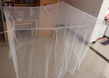 于是在网上购买了一套蚊帐,等收到货安装时,发现蚊帐没法安装,因为我们买的床四周有一圈缓冲围挡,宽度过大,而且没办法固定,但最后还是在我的“心灵手巧”下连捆带绑的把蚊帐给装上了,美观就谈不上了,只要没有蚊子就成事大吉。但白天有时候没有关蚊帐,还是有蚊子会跑进去,晚上不注意就会被蚊子给闹醒。