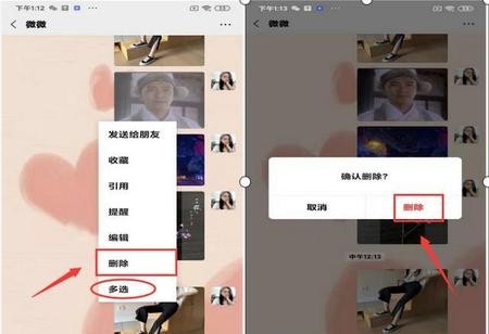 首先在你们的聊天页面中找到你想要删除的图片——长按住这张图片2秒钟,微信页面就会弹出可删除的按钮——然后直接点击删除就好了,如果是多张图片,那就先选择多选选择好了之后在删除,详情如下图:
