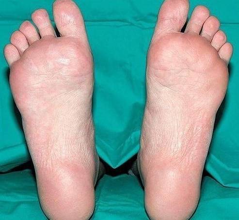 2、高弓足,足弓太高,足底面积变小,足跟紧张,跖筋膜也过度紧张容易疲劳,产生劳损性炎症引起酸痛胀的感觉。足底的前内侧,特别是第一跖骨头的位置受到的压力最大,脚底皮肤硬化,时而干裂,发生疼痛,足底其他受力点也因为压力过于集中而容易发生各种疼痛,走路困难。因为足弓过高,鞋子也很难找。