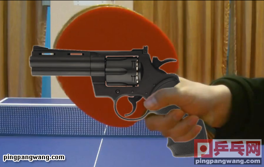 横拍是乒乓球比较普遍的握法,握法较为简单,容易上手。目前在专业乒乓球运动员和广大业余乒乓球爱好者中大多都选择横拍握法。横拍握法形象的讲有点类似拿菜刀和手枪!