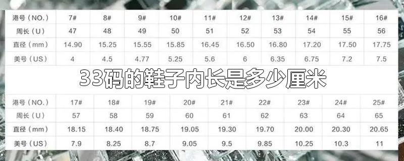 33码鞋子内长是21.5厘米。33码为欧码的表示方式,换算成中国码表达则是厘米或毫米。根据公式中国码=(欧码+10)×5得出,中国码=(33+10)×5=215毫米=21.5厘米。