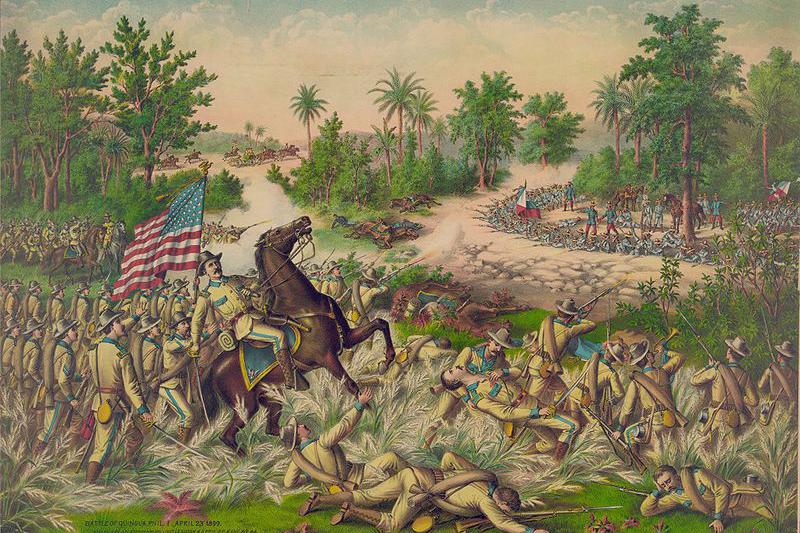 美西战争中美国从西班牙手中所夺取的并非只有关岛:整个美西战争期间美国只用了不到两个月的时间就将西班牙原殖民地古巴、菲律宾、波多黎各以及太平洋上的关岛全部占领。美军占领关岛几乎就是一出喜剧:由于长期被西班牙放任不理,所以关岛的军队守备力量非常松懈。当美国巡洋舰“查尔斯顿”号向关岛上的西班牙要塞开火时驻军总督还以为美国在鸣友好的礼仪炮。驻关岛的西班牙的总督还命人专门带着两门小炮去港口还礼,结果美国几乎是不费一兵一卒就占领了关岛。