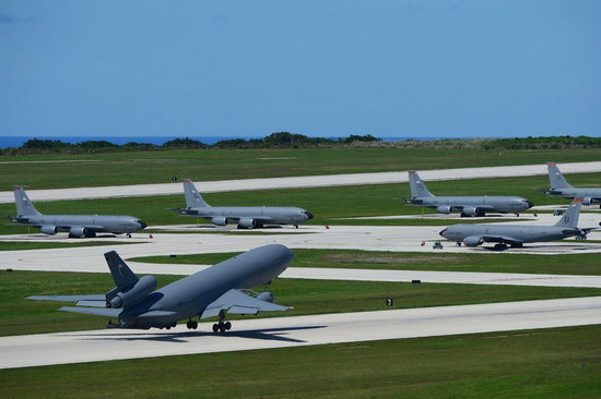 美国的B-2战略轰炸机从关岛起飞三小时可达东京和马尼拉,四小时可到上海,四个半小时便可到平壤,12小时内可以抵达亚太地区任何目标。距离台湾不过2600多公里的关岛是美国距离中国最近的领土。如今美国在关岛设有安德森空军基地和阿帕拉海军基地。关岛基地的存在使美军既可以威慑自己在亚太地区的战略对手,也可以压制日、韩等盟友可能表现出来的离心倾向。越南战争期间岛上的安德森空军基地不仅作为战略轰炸机的前沿作战基地,也是武器装备、航空燃油、医疗物资的储存和中转站。