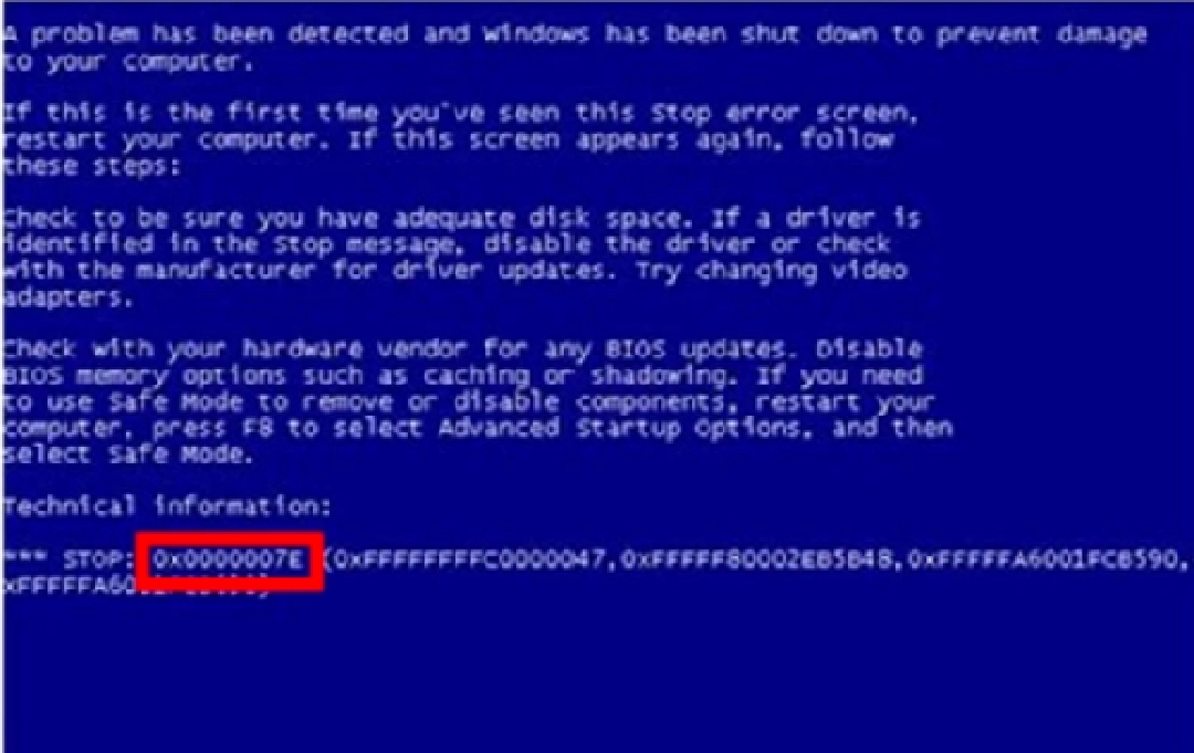 4、蓝屏代码:0x0000007E Ox0000008E