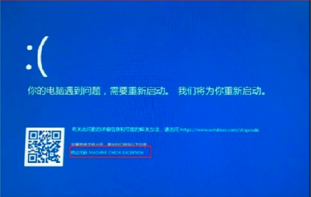 如果看到蓝屏代码为“MACHINE-CHECKEX CEPTION", 意味着导致电脑蓝屏的原因在于CPU超频过度。