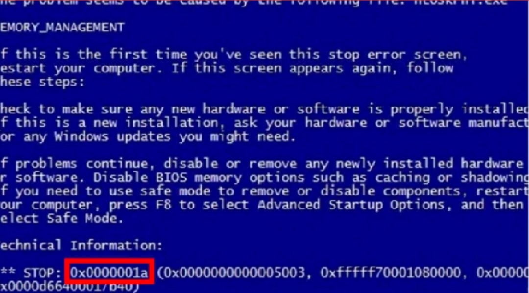 6、蓝屏代码:0x0000001A