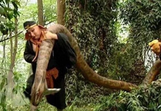 看到这张图片相信大家就都记起来了,这一条大蟒蛇曾经是很多人的童年噩梦,她本体是一条蟒蛇,喝血后就会变身,由衰老变年轻,真的非常神奇,这位女演员的颜值也非常高,只是当时还小,根本就没有什么审美,只是觉得她是妖怪,很吓人。她有很多种形态,本体、人以及半人半蛇的状态,大家之所以害怕她,主要还是因为这条蛇非常逼真,可是你们知道吗?这条蟒蛇并不是道具,而是真的蛇。