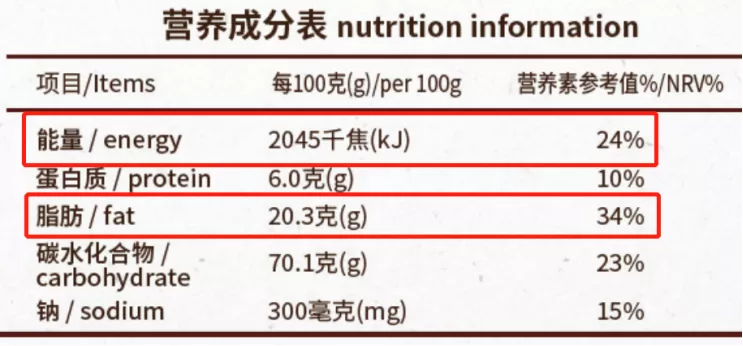 ▲图:某品牌猴头菇饼干营养成分表