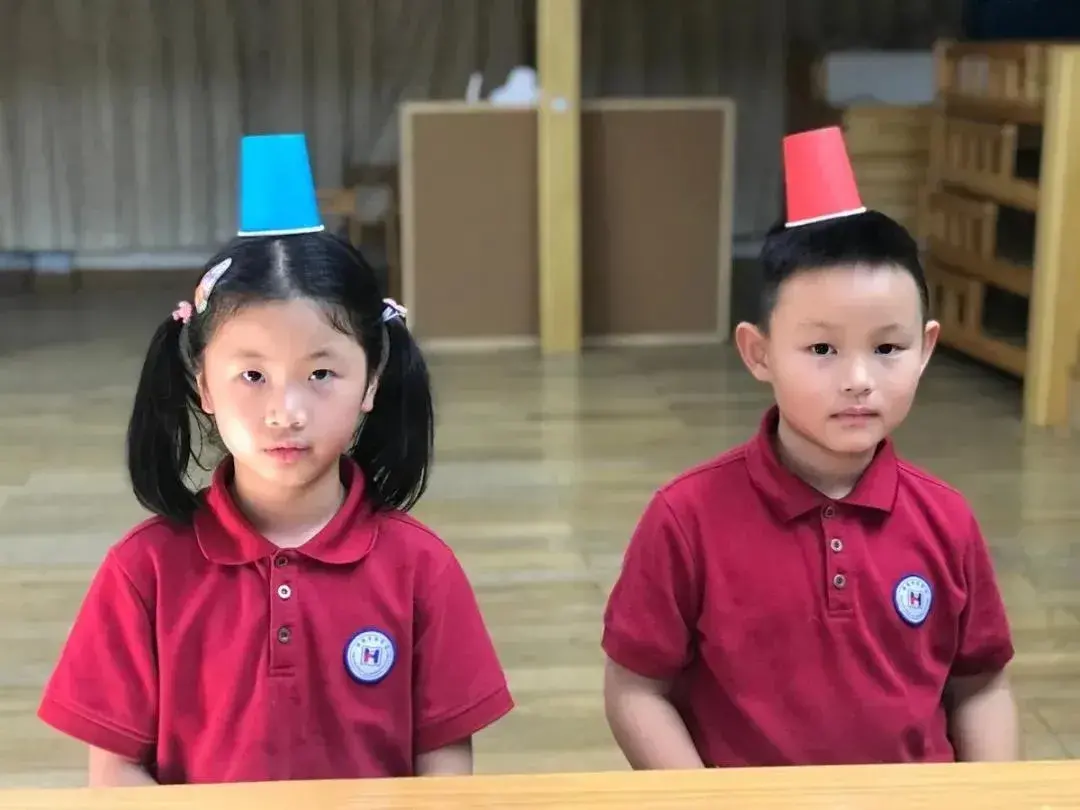 方式:准备一个一次性杯子和一段音乐,当音乐响起,孩子将杯子放于头顶,做到头正、身正、肩平、小手放腿上。