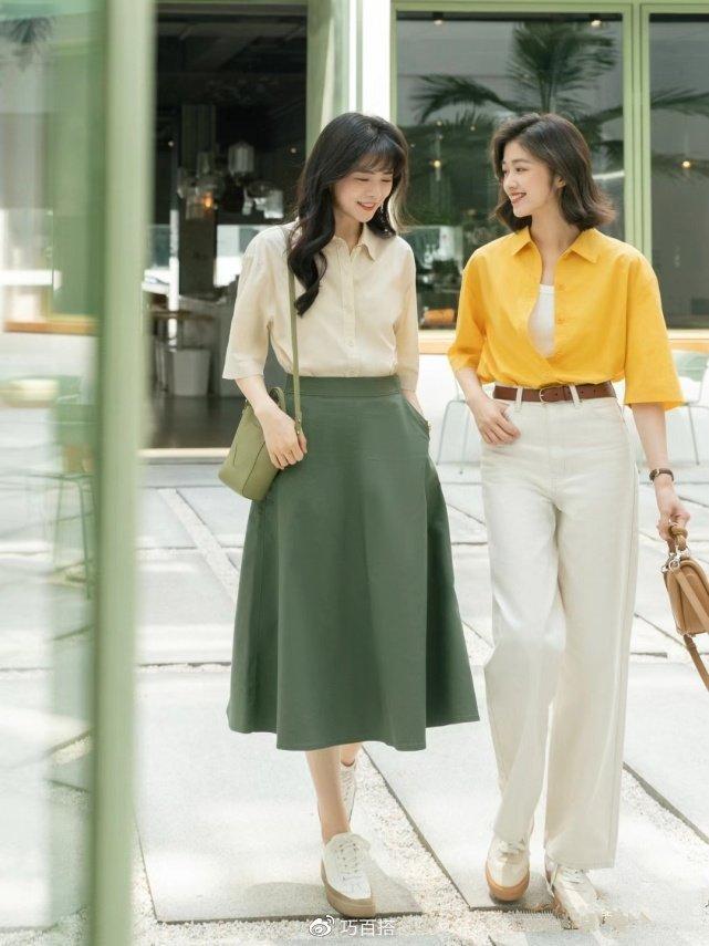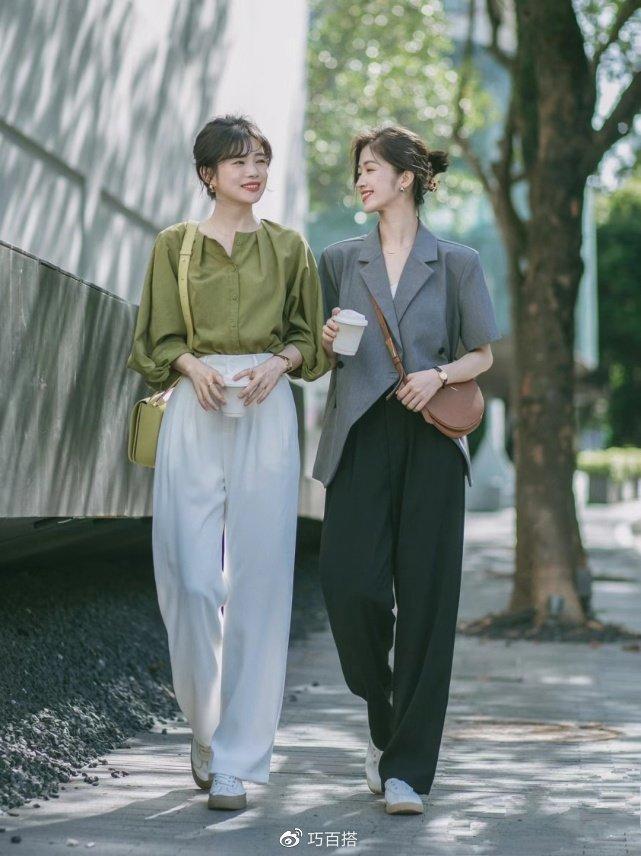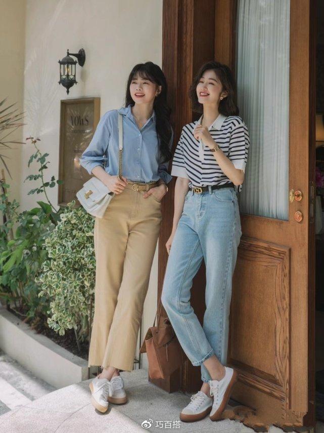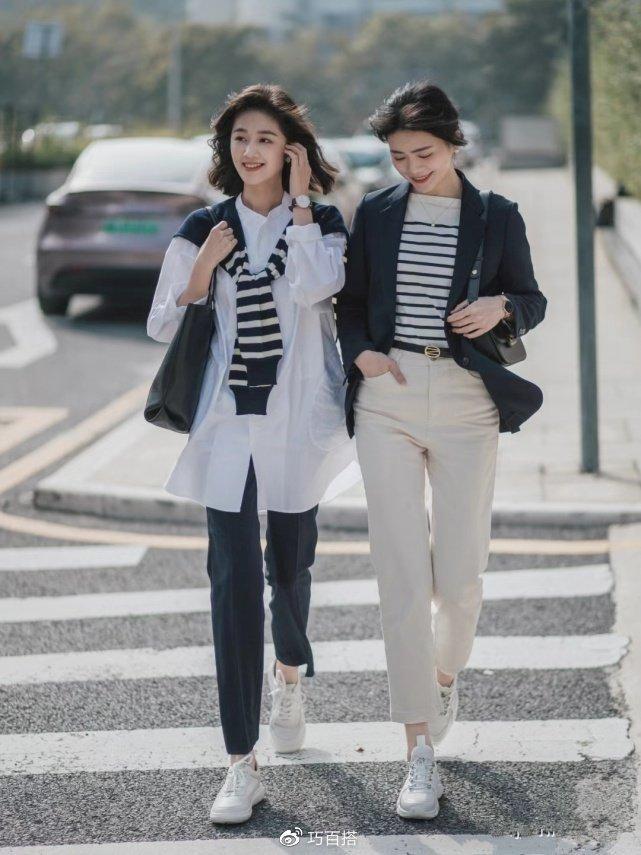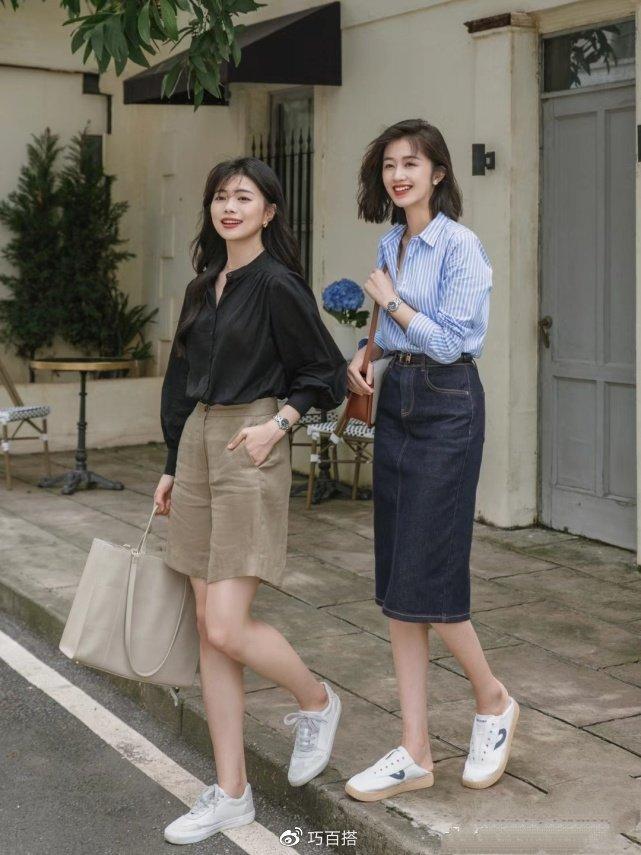 害怕不保险的姐妹,照搬照抄博主身上这两套造型就OK,喜欢休闲风格的姐妹,甚至可以把T恤+休闲短裤作为小白鞋的“良配”,春夏天没有露脚准备的姐妹,都要安排上。