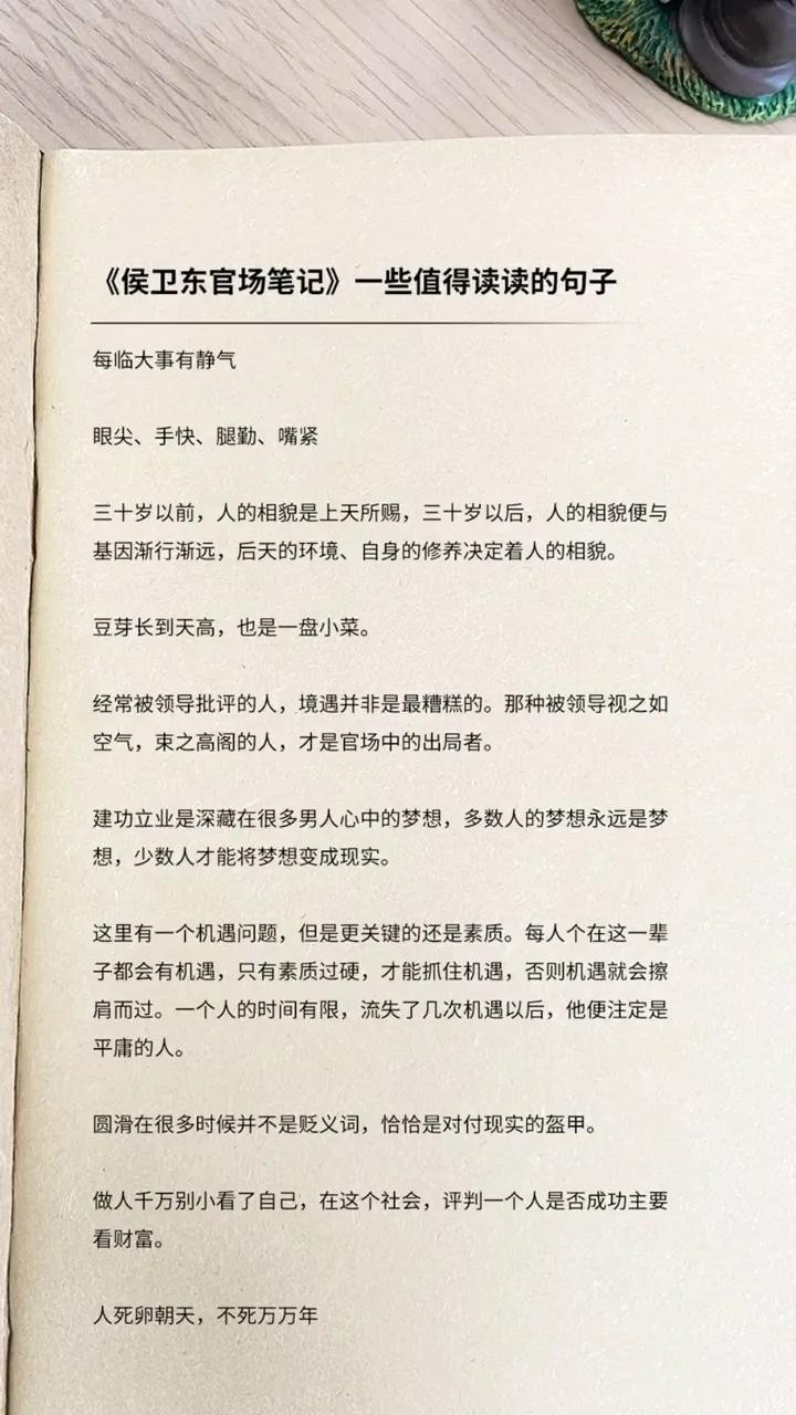 我强烈推荐这本侯卫东官场笔记,尤其是基层岗位的小伙伴。别看封面土气,小说对基层工作、人际关系、组织架构做了非常生动并且真实地刻画。作者小桥老树是在职公务员靠写作出圈的第一人,当年版税收入超过贾平凹的。作者和主人公一样,都是大学毕业,从乡镇基层岗位干起,所以很多情节都是作者当年的亲身经历,这点非常难得,想要提前了解一下基层的政治生态,不可错过。