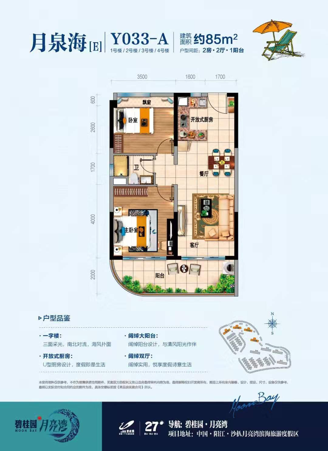 碧桂园月亮湾,位于粤港澳大湾区后海,广东阳江市阳西县月亮湾4A景区旁,交通便利,高速(沈海高速新墟出口),高铁(深湛高铁阳西站点),机场(湛江机场粤西国际机场,扩建中预计2020年启用)。高铁2小时左右到广州,佛山等城市,项目出发高速4小时左右可到珠海。项目出发1.5小时即可到达机场。