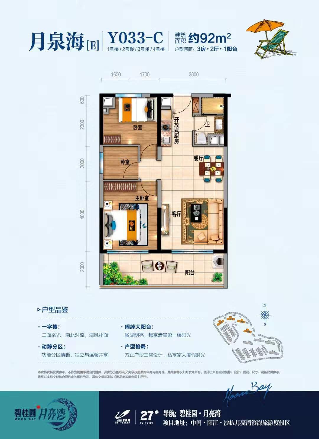 现主推二期月泉海小区,距离海边500米左右,主要以联排别墅和度假公寓为主,联排目前已经全部售罄,主要在售48-49平1房,85-88平2房,90-92平3房。南北对流,精装修交房。