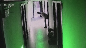 他在二楼其中一扇房门前观察了一会,又蹑手蹑脚进入隔壁的202室,10分钟后他突然从203室走了出来。