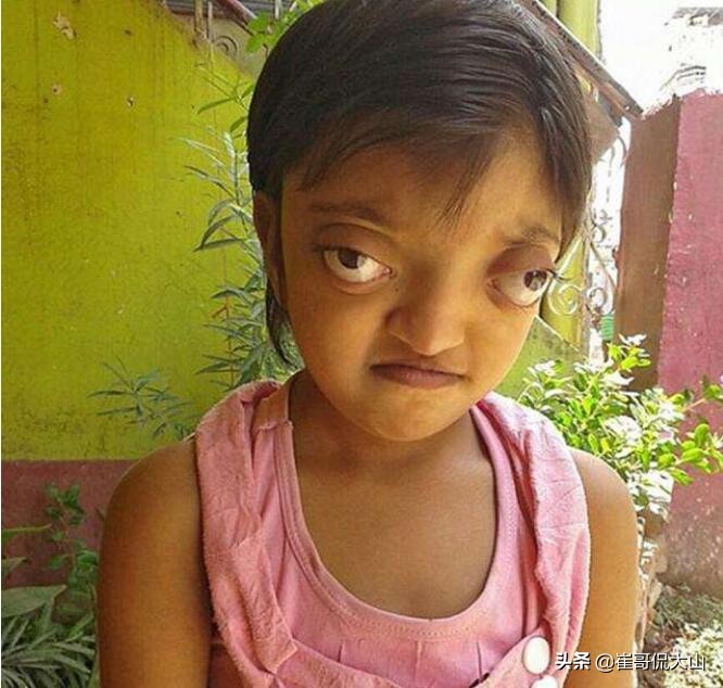 前面都是轻微的,只能说是神似金鱼眼,好好保养化妆也是能呈现漂亮的眼睛的。但是这个照片上面的小女孩,是天生的!这个才应该是真正的真实版金鱼眼吧,看着挺吓人的,估计只能手术解决的。