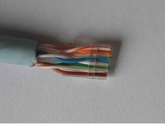 按照上面说的顺序,将水晶头内部分线件套在导线上。