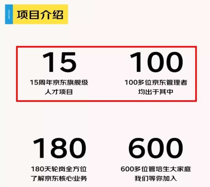 比如下图的京东今年秋招的管培生项目介绍中有提到,100多位京东的管理者都是管培生。