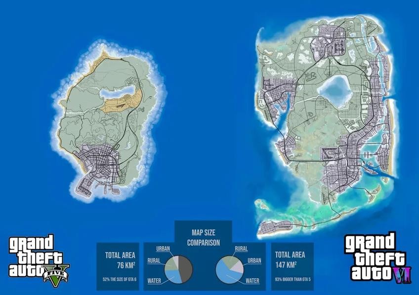 首先就是游戏地图必须得扩大一倍才能满足玩家的探索欲,虽然说《GTA5》的地图已经算是比较大了,但是随着这些年各种类型的开放世界游戏的出现,游戏地图也是越做越大。对比这几年的不少开放世界游戏,《GTA5》中的地图大小显然已经无法再满足玩家了,特别是在不少GTA玩家心里其实对《GTA5》中只有一座城市还是感到有些单调的,所以《GTA6》在地图规模上扩大地图面积以及增加城市的数量是一件必须要做的事情。可喜的是,在预告片中我们已经可以看出《GTA6》无论是地图规模还是城市数量以及地貌种类都要大大超越《GTA5》,也算是一个好消息了。