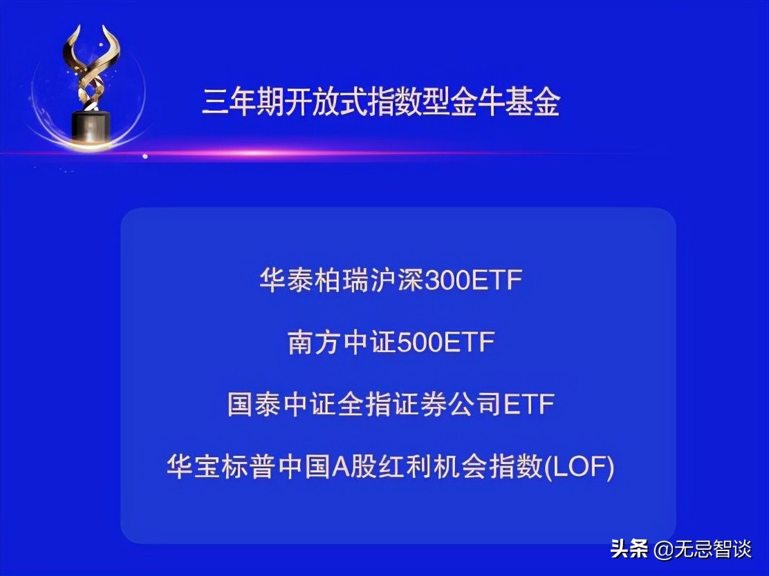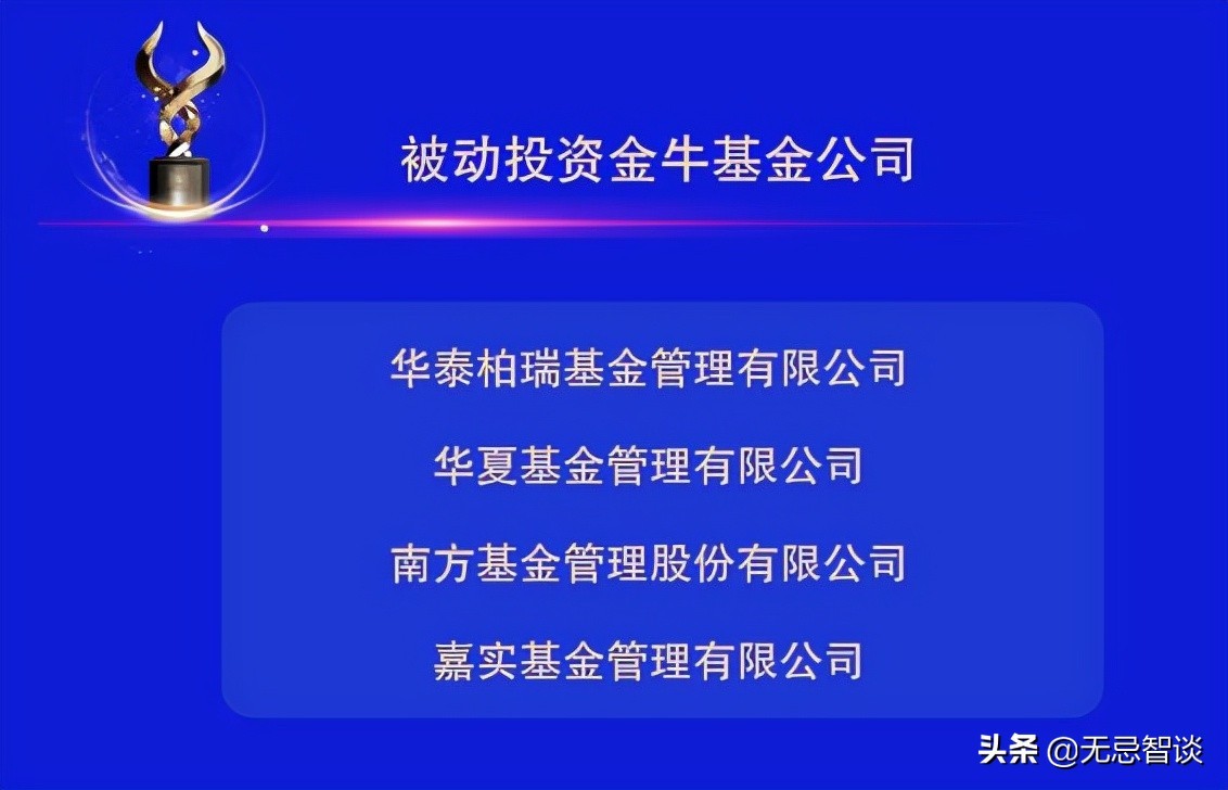 获得被动投资金牛基金公司的是华泰柏瑞,华夏,南方,嘉实。