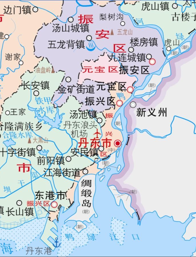 丹东港现辖浪头(河港)、大东(海港)两个港区和其
