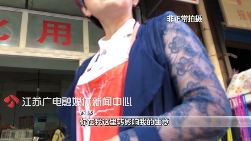商贩说:“你不要老在我这里转,你在我这里转影响我的生意!我怎么做生意啊?你在这里,我做生意心都不定!”