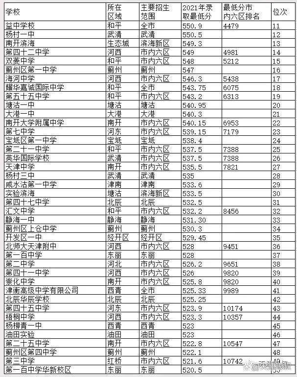 杨村一中清北人数仅次于南开和一中,超过新华和实验