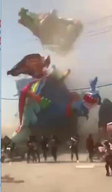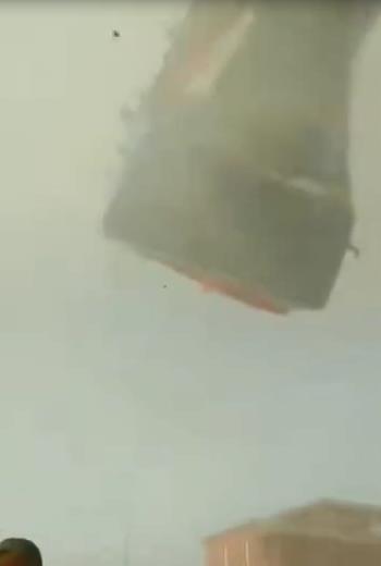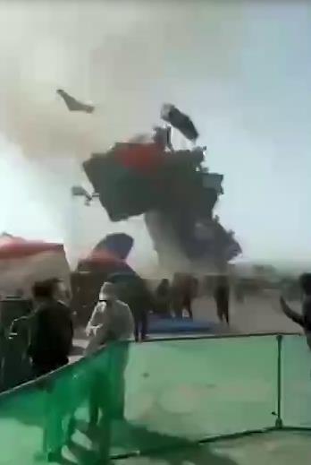 充气城堡被卷到空中。