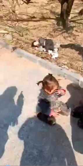 一个小女孩坐在地上哭泣。