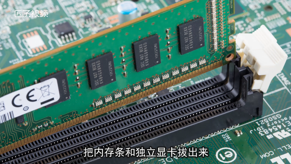 把内存条和独立显卡拔出来,用橡皮擦把金手指擦拭一下,把上面的氧化层擦拭掉,然后重新插稳插实即可。