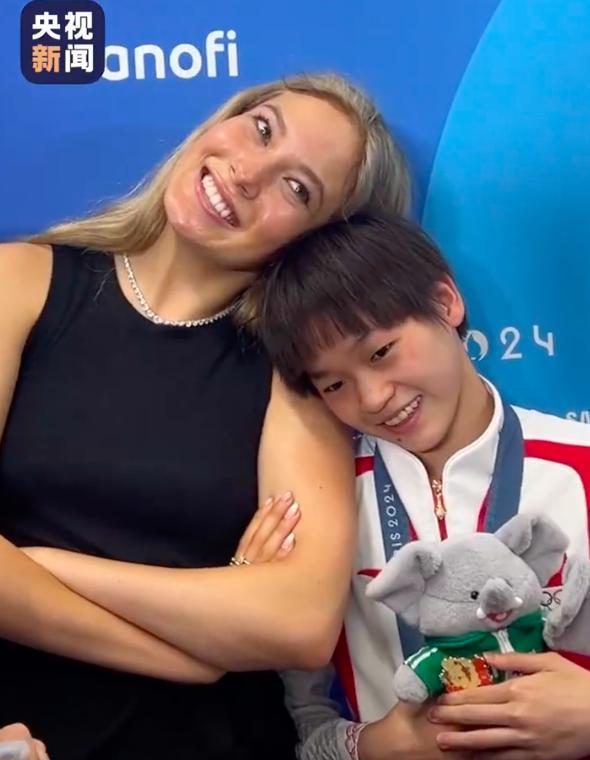 当天,全红婵还见到了偶像谷爱凌。在赛前发布会上,全红婵激动地跺脚,抱着谷爱凌不撒手,并说道:" 终于见到真人了,一眼就看到了(谷爱凌),感觉她整个人都在发光。"