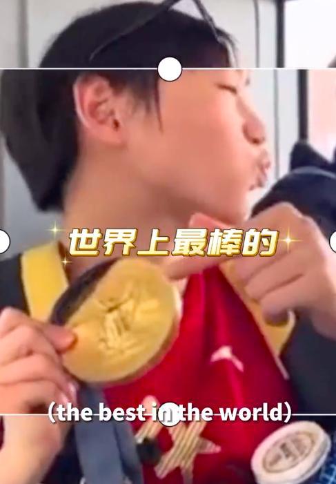 对方说全红婵是奥运冠军,全红婵谦虚说道:" 一般一般,给你看看我的奖牌吧。" 外国男子惊讶道:"The best in the world(世界上最棒的)。"