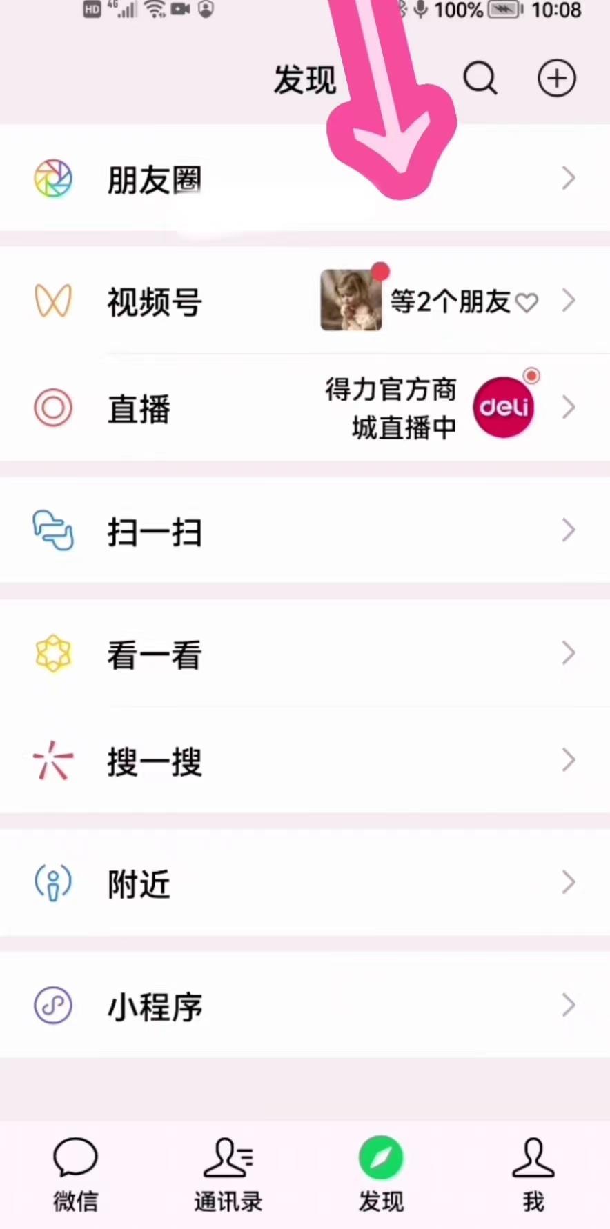 打开微信—点击右下角【发现】点击最上方的【朋友圈】