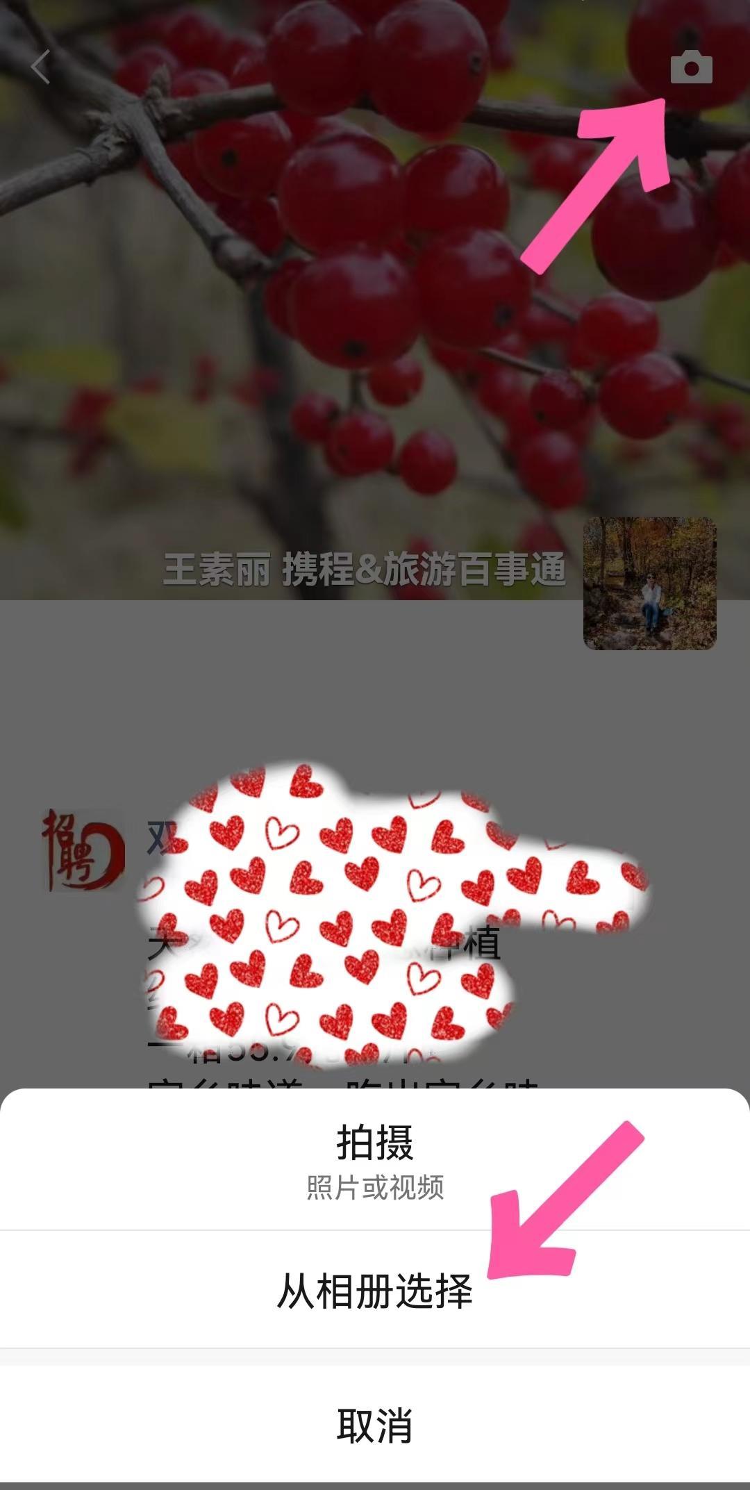 点击右上角的【相机标志】, 进入选择图片的界面,点击【从相册选择】