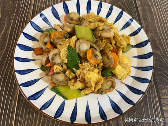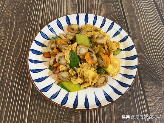 一道味道鲜美,口感嫩滑的黄瓜,鸡蛋,胡萝卜炒扇贝肉就做好了。再配上一碗白米饭。就是一顿不错的午餐。
