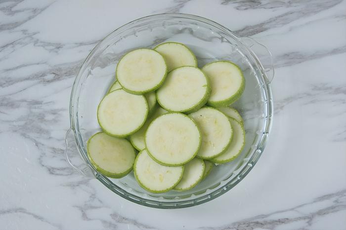 将切好的西葫芦片放入盘中,轻轻撒上适量盐,然后用手将盐均匀拌匀。这样的巧妙处理,能让西葫芦在腌制的5分钟内入味,增添饼的鲜美。