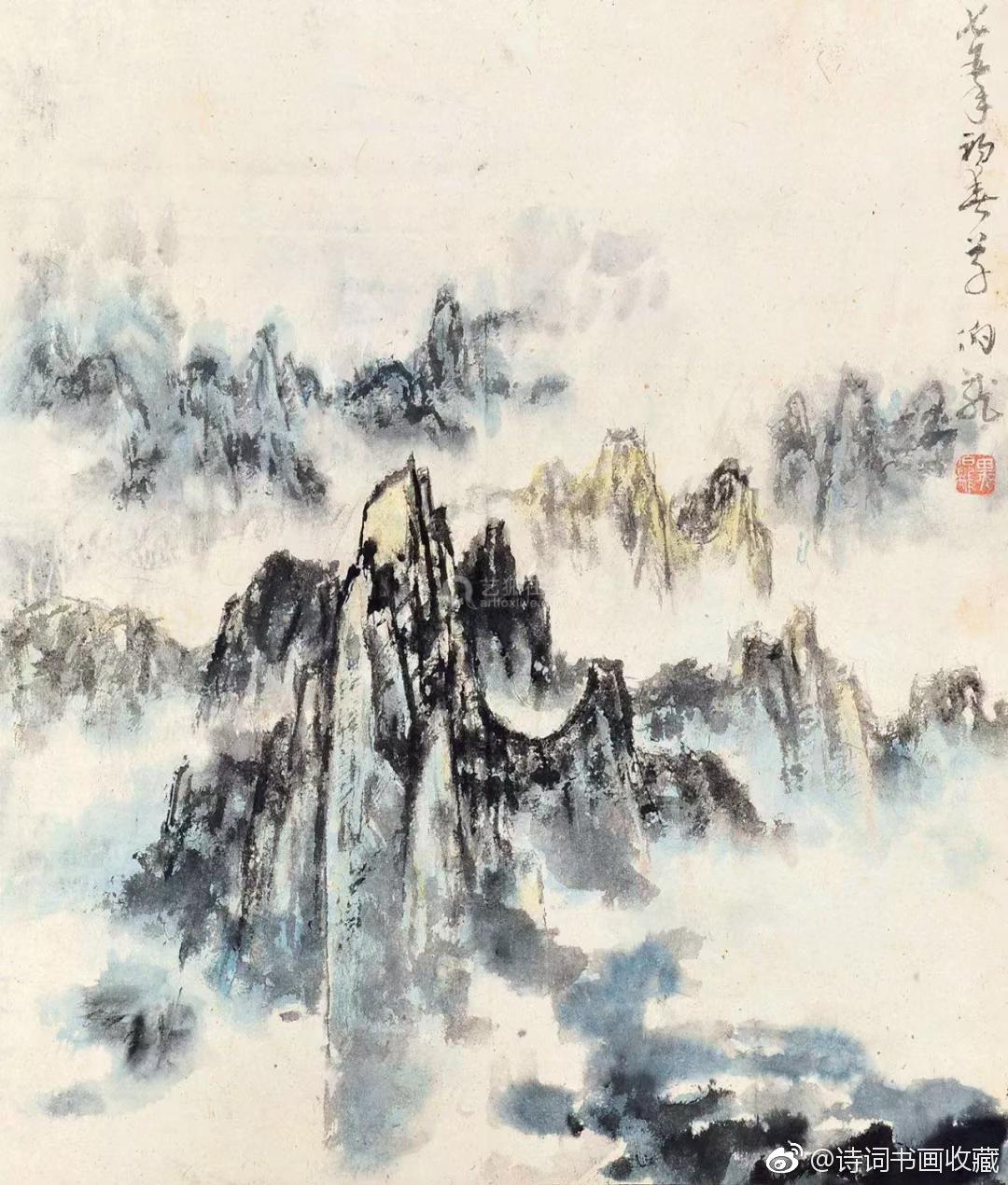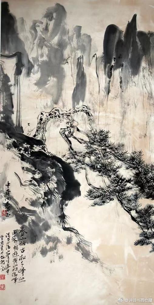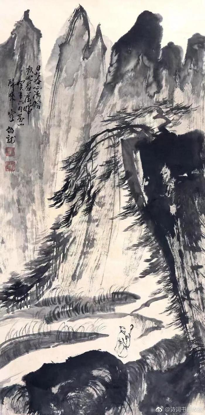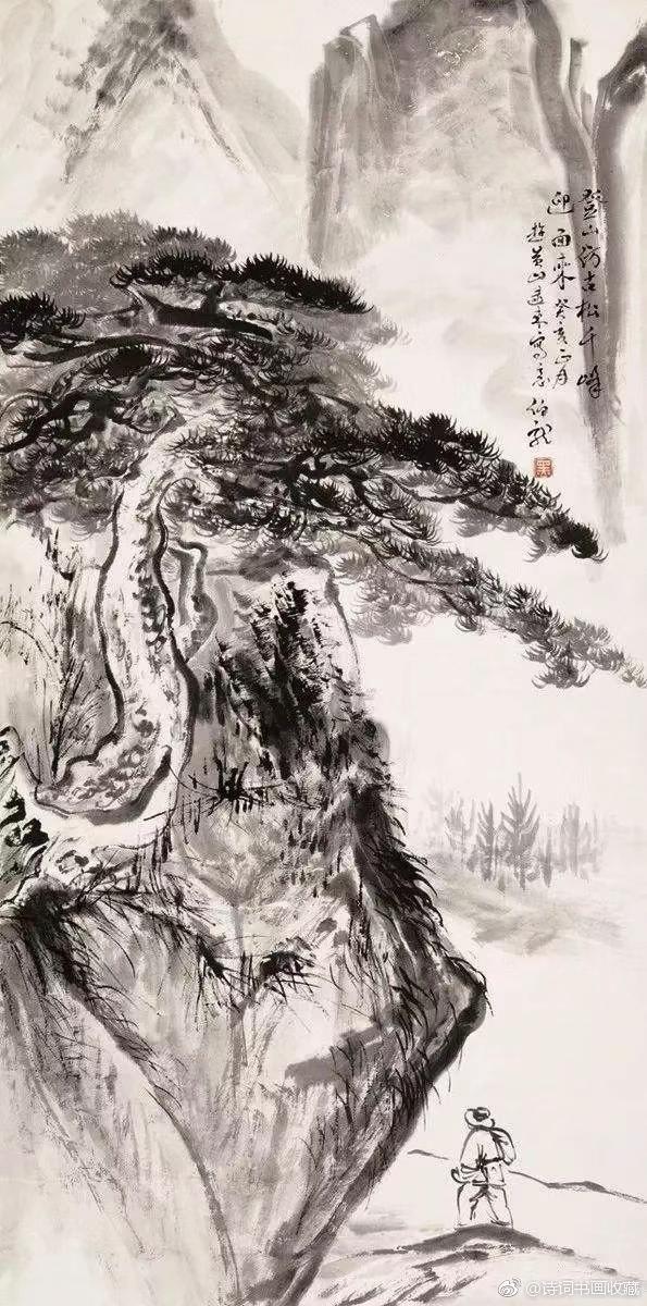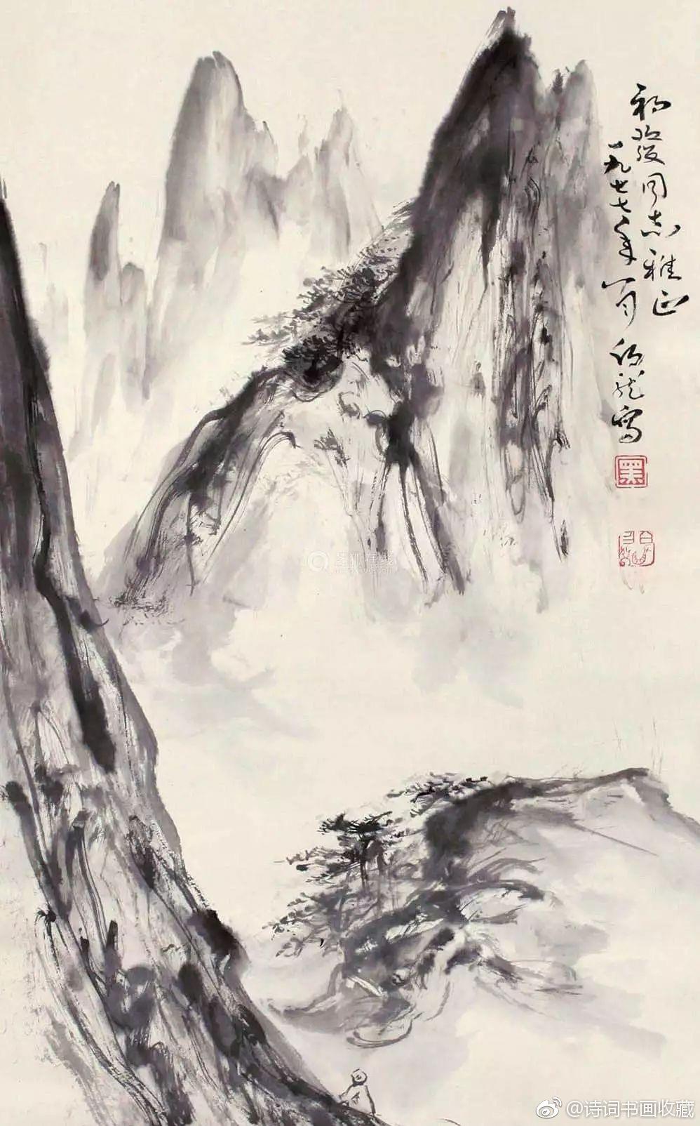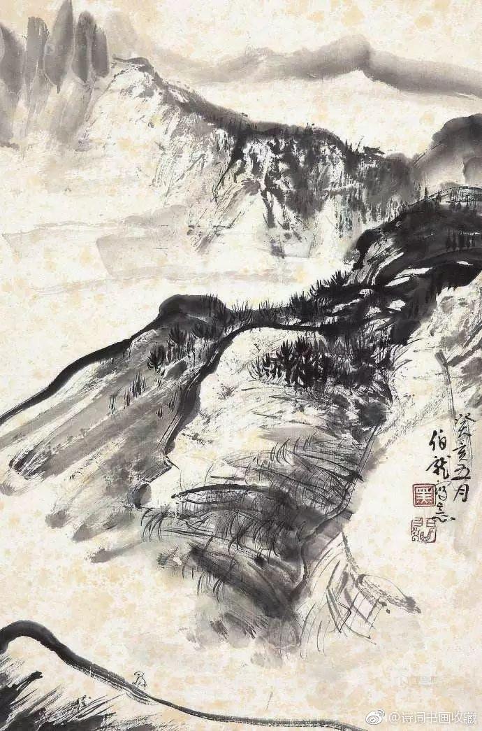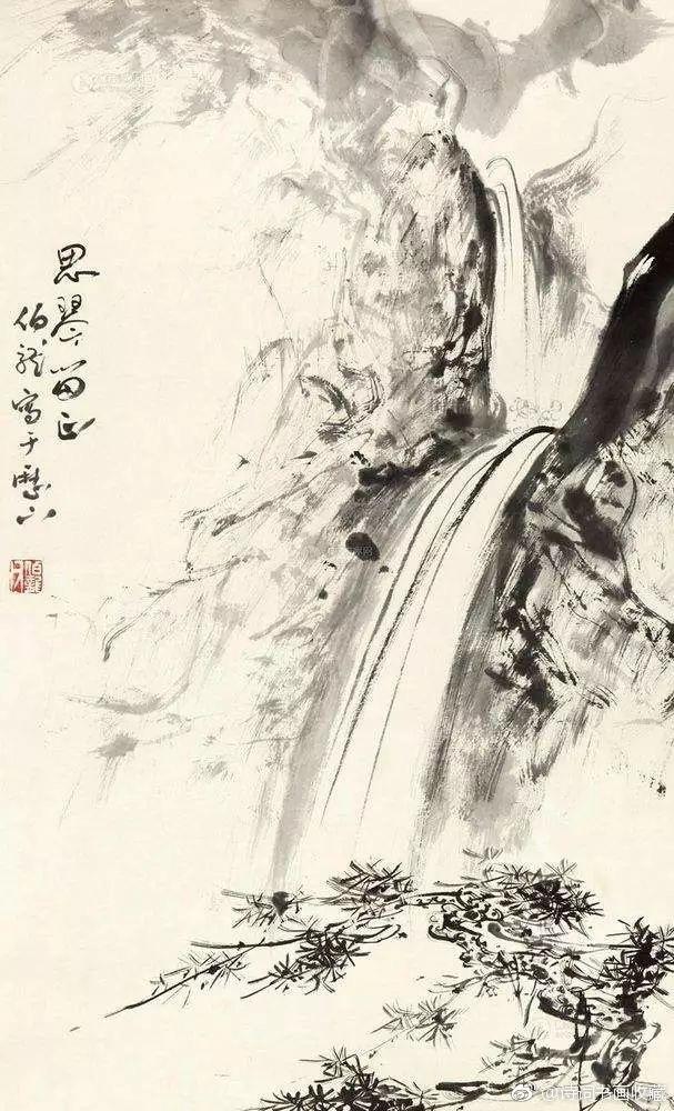写意山水画大家黑伯龙的山水!黑伯龙(1915—1989),原名黑元吉,山东临清市人,一代写意山水画大家。黑先生晚年善画苍松古柏、顽石劲竹、高山飞瀑、叠嶂烟云。但他不是自然立义的再现,而是删繁就简生动洗练地描写物象以神写形,以形传神。即便在盈尺小幅之中,也具有飓尺千里之势,古拙老辣之妙。 @微博国画
