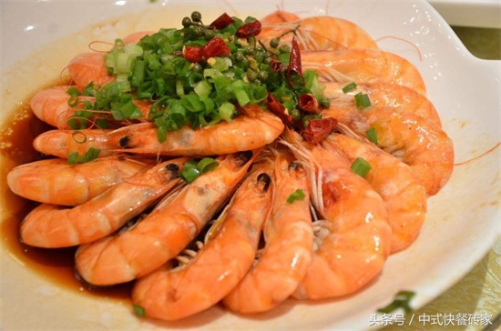 将新鲜活虾500克,海味汤50克,香油10克酱油15克,醋25克,鸡精少许,葱、姜各适量。