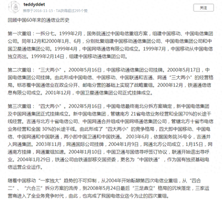 我只是简单了说了下这三家的关系,其实当时还划分很多其它的通讯公司。我在百度找了一下,一位大神回答已经很详细了,我把图抓来了,如果有兴趣的朋友可以看一下。