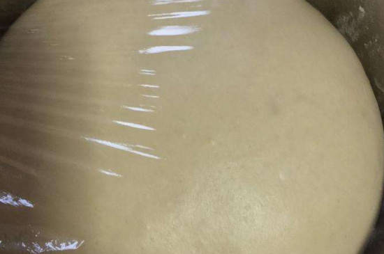 将面团根据比例制作完毕后,放置在30℃~40℃的环境内发酵一个小时。此时观察面团,如果面团已经有明显的胀大,而且表面富有光泽,用手戳一下不能反弹回来,面团变得很柔软,综合以上情况那就说明面团发酵成功。