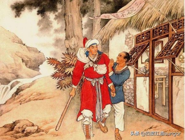 在原著中,武松路过三碗不过岗时,听到店小二说道:“但凡客人来我店中,吃了三碗的,便醉了,过不得前面的山冈去,因此唤做‘三碗不过岗’。若是过往客人到此,只吃三碗,更不再问。”武松一听就来气,我只喝了三碗,你居然恐吓我喝不了。于是又继续喝,店家又不敢惹怒武松,只好依着他来,武松前后一共喝了十八碗。武松借着酒劲,不听店小二劝告,仍过景阳冈。但好汉就是好汉,武松在酒后居然打死了害人的大虫,成了人人敬仰的打虎英雄。