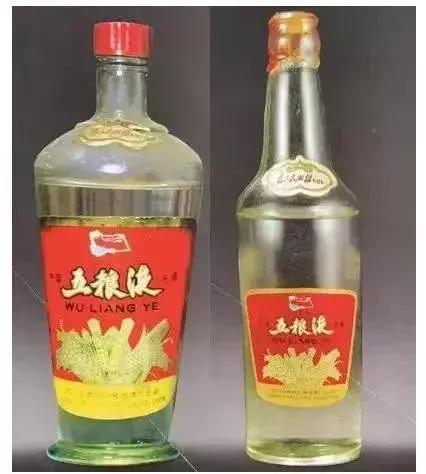 1995年,铝盖长城还在,塑盖长城也仍然如火如荼,五粮液此时推出高级防盗盖——三防盖(下图右)。这种意大利技术的封盖,其特点是,酒只能倒出、不能回灌。而为了配合这样的封口,酒的瓶型也发生了变化,瓶身棱角较多,俗称“多棱瓶”(下图右)。尽管其它瓶型仍然存在,多棱瓶成为这一时期的主流瓶型,以至于后来五粮液推出3M防伪标识,这一瓶型仍在沿用中。