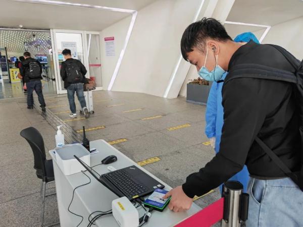 航站楼入口健康码、核酸报告查验支持手机扫码和刷身份证验证两种方式,为老幼人群等智能手机操作不熟的群体提供便利。