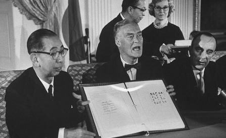 签署《美日安全保障条约》时的日本首相吉田茂和、美国国务卿艾奇逊