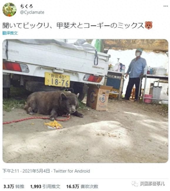 “听说这是甲斐犬和柯基的混血,简直震惊了,好像熊啊。”